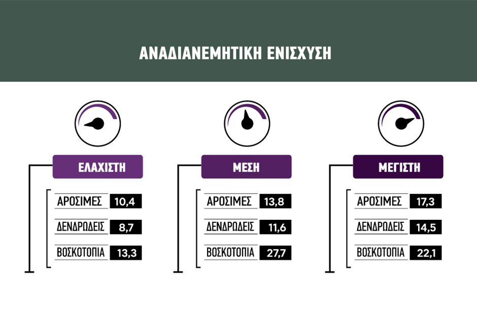 - ∆ενδρώνων από 87 έως 145 ευρώ/εκτάριο