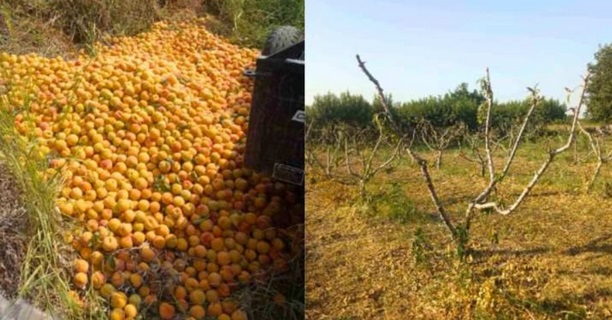 Και πρόσθεσε: «Προχτές πέταξα 60 κλούβες συμπήρηνα γιατί μου είπαν ότι δεν τα παραλαμβάνουν για καλά και θα έπρεπε να τα παω για την κατηγορία ‘κλαρίσιο’ που είναι ακόμη χαμηλότερη η τιμή. Έτσι προτίμησα να τα πετάξω παρά να τους τα δώσω».