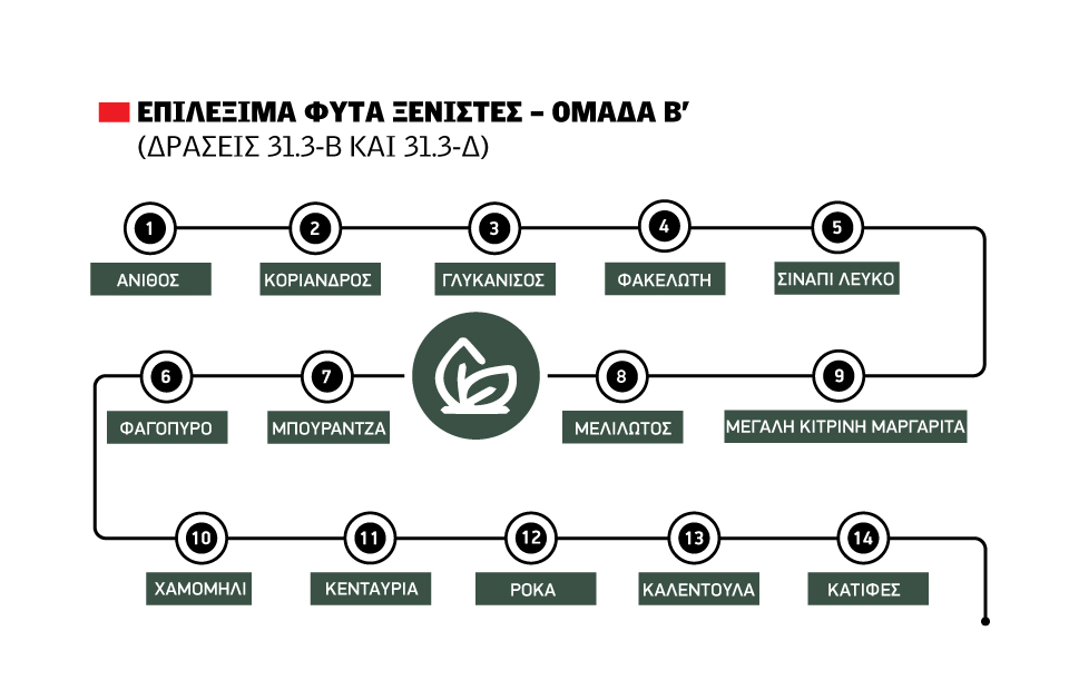 ∆ράση 31.3-Β «Σπορά του υπορόφου στις µόνιµες καλλιέργειες για φυτοκάλυψη (χωρίς παραγωγή) και δηµιουργία ζωνών βιοποικιλότητας στα περιθώρια µε χρήση ξενιστών»