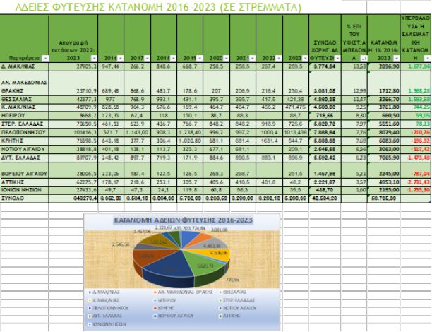 Από το 2016 έως το 2023 στη χώρα μας έχουν χορηγηθεί 48.584,28 στρέμματα μέσω νέων Αδειών Φύτευσης, παραμένει όμως μέχρι σήμερα άγνωστο, το ποσοστό πραγματικών φυτεύσεων (εκτός του 2016 ποσοστό που ανερχόταν στο 61% περίπου), λαμβανομένου υπόψιν και του ότι η υποχρέωση φύτευσης του αμπελώνα μπορεί να πραγματοποιηθεί έως και τρία χρόνια μετά τη χορήγηση της Άδειας Φύτευσης (με εξαίρεση τα έτη της πανδημίας).