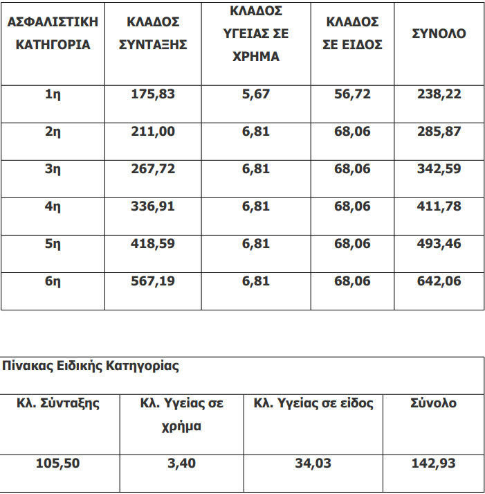 Για τους ασφαλισμένους που έχουν δικαίωμα υπαγωγής στον Κλάδο Επικουρικής Ασφάλισης και ΤΕΚΑ, οι ασφαλιστικές εισφορές έχουν προσαυξηθεί για το έτος 2024 ως εξής: