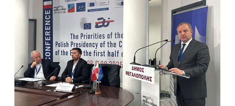 Στη διήμερη συνδιάσκεψη με θέμα: «Οι προτεραιότητες της Πολωνικής Προεδρίας στο Συμβούλιο της Ε.Ε. το Πρώτο Εξάμηνο του 2025», που διοργανώθηκε από τον Ευρωπαϊκό Οργανισμό Στρατηγικού Σχεδιασμού, σε συνεργασία με τον Δήμο Μεγαλόπολης και την ΑΡΚΑΔΙΑ ΑΕ παραβρέθηκε ο Υφυπουργός Αγροτικής Ανάπτυξης και Τροφίμων, Διονύσης Σταμενίτης.
