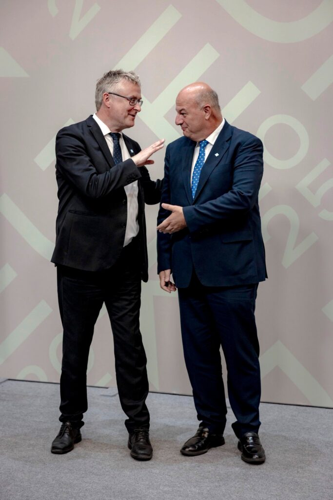 «Η Ευρώπη σήμερα δοκιμάζεται. Ο πόλεμος, η ενεργειακή κρίση, οι διεθνείς αναταράξεις και οι επιπτώσεις της κλιματικής αλλαγής φέρνουν στο προσκήνιο ένα επιτακτικό ερώτημα: μπορούμε να εγγυηθούμε στους πολίτες μας τρόφιμα ποιοτικά, ασφαλή και προσιτά; Η απάντηση είναι ξεκάθαρη: ναι, μπορούμε – αλλά μόνο αν κρατήσουμε τη γεωργία στον πυρήνα του ευρωπαϊκού σχεδίου. Γιατί χωρίς ισχυρό και ανταγωνιστικό αγροδιατροφικό τομέα, δεν θα έχουμε ούτε επισιτιστική ασφάλεια ούτε πράσινη μετάβαση», είπε ο κ. Τσιάρας.