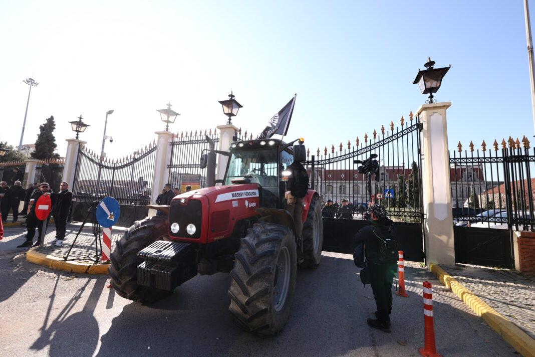 Στο λιμάνι, από νωρίς βρίσκονται ισχυρές αστυνομικές δυνάμεις και σύμφωνα με τον σχεδιασμό, έκλεισε η κεντρική είσοδος για να μην μπουν τα τρακτέρ.