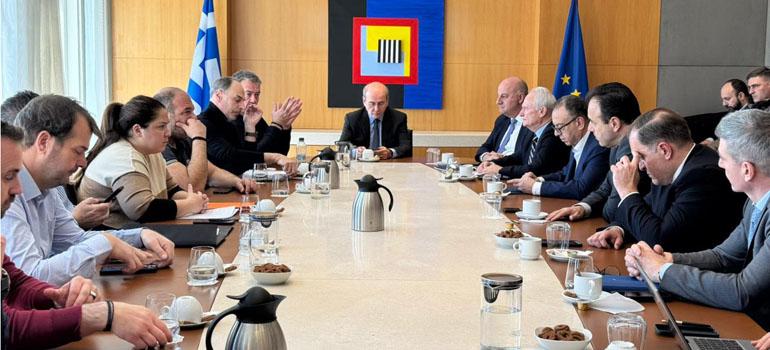 Σε συνέχεια της συνάντησης με τον Πρωθυπουργό Κυριάκο Μητσοτάκη πραγματοποιήθηκε η συνάντηση εκπροσώπων των αγροτών, υπό την Προεδρία του αντιπροέδρου της κυβέρνησης Κωστή Χατζηδάκη και με τη συμμετοχή του Υπουργού Αγροτικής Ανάπτυξης και Τροφίμων Κώστα Τσιάρα. Στο τραπέζι τέθηκε το ζήτημα με το ΑΤΑΚ και το ΚΑΕΚ ενώ συζητήθηκαν και ευρύτερα ζητήματα που απασχολούν τον πρωτογενή τομέα.