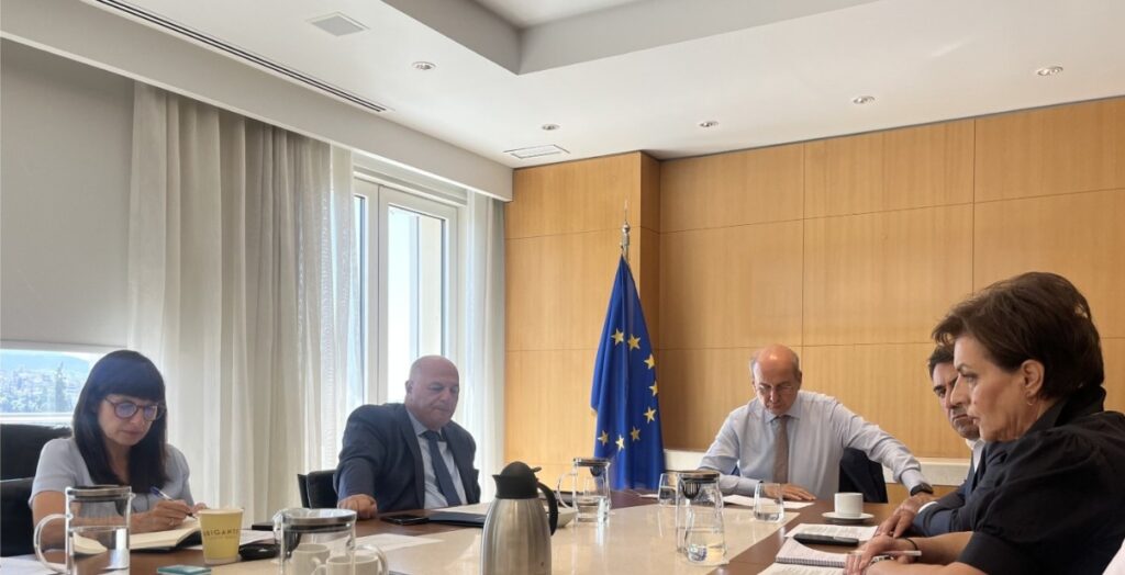 Το πρωί της Τετάρτης, 3 Σεπτεμβρίου, πραγματοποιήθηκε συνάντηση του Διοικητικού Συμβουλίου της ΕΘ.Ε.Α.Σ. με τον Αντιπρόεδρο της Κυβέρνησης, κ. Κωστή Χατζηδάκη, με επίκεντρο τα κρίσιμα και επίκαιρα ζητήματα που απασχολούν τον αγροτικό τομέα. Στη συνάντηση παρευρέθηκε και ο Υπουργός Αγροτικής Ανάπτυξης και Τροφίμων, κ. Κώστας Τσιάρας, υπογραμμίζοντας με την παρουσία του τη σημασία του διαλόγου για τον πρωτογενή τομέα.