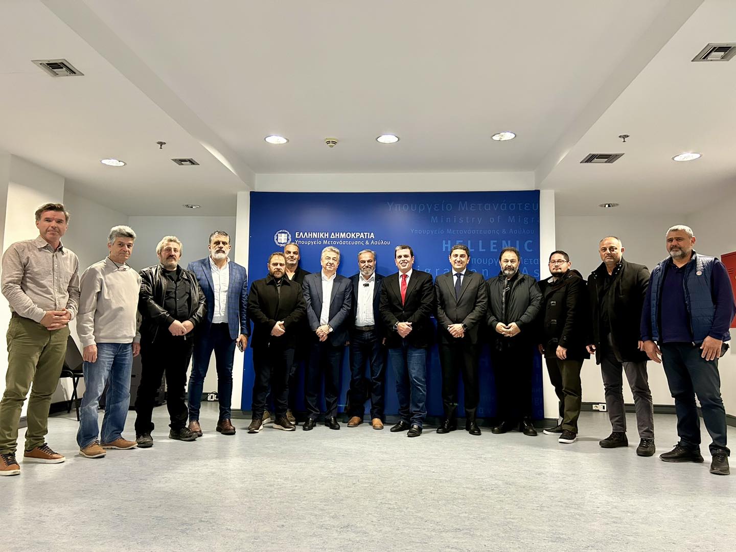 Στη σύσκεψη συμμετείχαν ο Α’ Αντιπρόεδρος της Βουλής και Βουλευτής Λασιθίου, κ. Γιάννης Πλακιωτάκης, ο Περιφερειάρχης Κρήτης, κ. Σταύρος Αρναουτάκης, ο Γενικός Γραμματέας Μεταναστευτικής Πολιτικής, κ. Πάτροκλος Γεωργιάδης, ο Γραμματέας της Αποκεντρωμένης Διοίκησης Αττικής, κ. Γρηγόρης Ζαφειρόπουλος, η υπηρεσιακή ηγεσία της Διεύθυνσης Μεταναστευτικής Πολιτικής του Υ.Μ.Α. και ο Πρόεδρος του Επιμελητηρίου Χανίων, κ. Αντώνης Ροκάκης και ο Πρόεδρος του ΔΣ Μικρών Συνεταιρισμών της ΕΘΕΑΣ, κ. Μύρων Χιλετζάκης.