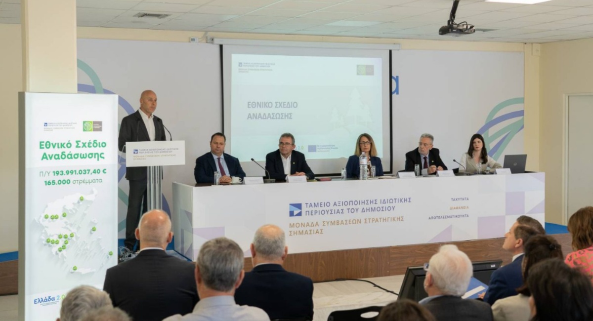 Τους βασικούς άξονες του Εθνικού Σχεδίου Αναδάσωσης παρουσίασαν στελέχη του ΤΑΙΠΕΔ και του Υπουργείου Περιβάλλοντος και Ενέργειας (ΥΠΕΝ) σε κοινή εκδήλωση που πραγματοποιήθηκε την Τετάρτη, 26 Απριλίου στο Ολυμπιακό Στάδιο.